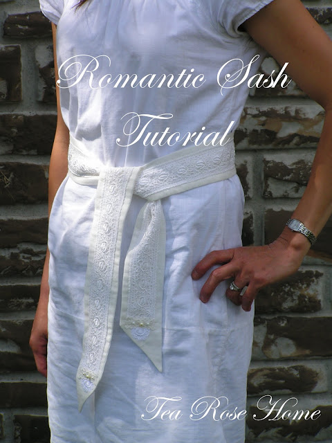 6. Use fray check to seal the ends of the laces. The lace I had was a little shorter than the sash I made, so I had to be creative and added a little more on the end. If you have long enough lace, you can cut it diagnally and finish it with simple edge. Sew the pearls on.
